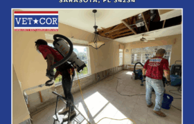 Best Water Damage Remediation Sarasota – VetCor of Sarasota Manatee Why Choose the Best Water Damage Remediation in Sarasota? When water invades your Sarasota home, the clock starts ticking immediately. Every passing hour allows water to penetrate deeper into building materials, increase structural damage, and create ideal conditions for dangerous mold growth. Florida’s humid climate makes these risks particularly acute—what might take days to develop elsewhere can manifest within 24 hours here. Understanding these dangers underscores why professional intervention isn’t optional; it’s essential. Water damage encompasses more than visible puddles. It includes saturated drywall, soaked insulation, warped hardwood floors, and moisture trapped in wall cavities where you can’t see it. These hidden moisture pockets become mold incubators, potentially exposing your family to allergens, respiratory irritants, and toxins. Beyond health concerns, delayed or improper remediation leads to wood rot, compromised structural integrity, and damage that compounds exponentially over time. Professional remediation teams bring capabilities impossible to replicate with household equipment. Industrial extractors remove hundreds of gallons of standing water rapidly. Commercial dehumidifiers and air movers create controlled drying environments that prevent secondary damage. Thermal imaging and moisture meters detect hidden water that visual inspection misses. Experienced technicians understand building science—how water moves through different materials, which drying strategies work best for specific situations, and how to verify complete drying before reconstruction begins. Choosing the best water damage remediation Sarasota professionals means selecting partners who combine technical expertise with genuine care for your situation. It means working with teams available 24/7, equipped to handle emergencies immediately, and committed to restoring not just your property but your peace of mind. The right professionals turn devastating situations into manageable processes with clear timelines, transparent communication, and guaranteed results. Our Comprehensive Water Damage Remediation Process Emergency Water Extraction and Drying The first critical phase begins when our team arrives at your property. Our Best Water Damage Remediation Sarasota technicians conduct immediate assessments, identifying water sources, determining damage extent, and classifying contamination levels. We categorize water as clean, gray, or black based on source and contamination, which determines handling protocols and safety measures required. Extraction begins immediately using powerful equipment selected for your specific situation. Truck-mounted extractors handle large volumes quickly, while portable units access tight spaces and upper floors. We extract water from carpets, padding, and any porous materials that can be saved. Hardwood floors receive special attention—our technicians know when they can be saved through careful drying versus when replacement is necessary. The water damage remediation process transitions seamlessly from extraction to strategic drying. Our team positions equipment scientifically, creating airflow patterns that maximize evaporation. We don’t guess—moisture meters provide objective data, tracking moisture levels in different materials throughout the process. Wall cavities receive focused attention with specialized drying systems that circulate air through framing spaces. We monitor temperature and humidity constantly, adjusting equipment to maintain optimal drying conditions. Detailed moisture logs document progress, providing both accountability and insurance documentation. Mold Prevention and Remediation Prevention starts immediately because mold remediation Sarasota services become necessary quickly in our climate. While extraction and drying progress, we apply antimicrobial treatments to all affected surfaces. These EPA-approved products aren’t just surface cleaners—they penetrate materials, eliminating existing spores and preventing new colonization. We pay particular attention to areas that can’t be fully removed, like structural framing or subflooring that remains after damaged surface materials are removed. Air quality management runs continuously throughout the process. HEPA air scrubbers filter thousands of cubic feet per minute, capturing microscopic mold spores, bacteria, and other contaminants. This creates negative air pressure in affected areas, preventing cross-contamination to unaffected parts of your home. The result is safer working conditions for both our team and your family. When inspection reveals existing mold growth—common in undiscovered leaks or delayed remediation situations—our certified specialists implement full remediation protocols. We establish physical containment barriers and seal HVAC systems to prevent spore distribution. Affected materials are carefully removed, bagged, and properly disposed of according to regulations. All surfaces receive thorough cleaning with specialized products designed for different material types. Post-remediation verification includes independent testing, ensuring your home’s air quality meets or exceeds safety standards before we consider the job complete. Structural Repairs and Restoration Complete restoration represents our commitment to making damage disappear entirely. Our licensed contractors don’t just patch problems—we restore homes to pre-loss condition or better. This includes replacing all damaged materials: drywall, insulation, flooring, baseboards, cabinets, and any other affected components. We source materials that match your existing finishes, working with suppliers to find discontinued products when necessary or recommending suitable upgrades. Skilled craftspeople handle installation with attention to quality and detail. Drywall receives proper finishing with smooth, invisible seams. Paint is c