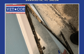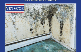 Mold Damage – VetCor of Sarasota Manatee Understanding Mold Damage and Its Impact in Sarasota The subtropical climate of Sarasota creates persistent challenges for property owners dealing with mold-related issues throughout residential and commercial buildings. High ambient humidity, frequent afternoon thunderstorms, and warm temperatures year-round establish environmental conditions that encourage rapid mold colonization whenever excess moisture accumulates indoors. Mold damage in Sarasota FL extends beyond cosmetic concerns, threatening structural integrity while creating indoor air quality problems that impact occupant health and comfort. Property values decline when mold problems remain unaddressed, and the costs of remediation increase exponentially as contamination spreads through building materials. Florida’s unique climate demands vigilance from homeowners and business operators who must recognize early warning signs and respond quickly to prevent minor moisture problems from developing into extensive mold infestations requiring comprehensive professional intervention. Common Causes of Mold Damage in Sarasota Homes and Businesses Multiple factors contribute to mold development in Sarasota properties, with environmental conditions and building characteristics combining to create situations where mold spores find ideal growth conditions. Water Leaks and Plumbing Issues Compromised plumbing systems represent one of the most common sources of water intrusion leading to mold problems. Corroded pipes, loose connections, failed water heater tanks, and deteriorating supply lines release water into wall cavities, crawl spaces, and beneath flooring where it remains undetected for extended periods. The persistent moisture from these water leaks provides continuous sustenance for mold colonies that establish themselves in wood framing, insulation batts, and drywall backing, often spreading extensively before visible signs appear in living spaces. Flood and Storm Damage Tropical weather systems bringing heavy rainfall and storm surge regularly impact Sarasota properties with water intrusion that overwhelms drainage systems and compromises building envelopes. Hurricane season poses particular risks as wind-driven rain penetrates through damaged roofing, compromised windows, and exterior wall cracks. Standing water following flood events saturates porous materials throughout structures, creating widespread conditions for mold damage development that begins within hours of water exposure if prompt extraction and drying do not occur. High Humidity and Poor Ventilation Sarasota’s natural humidity levels frequently remain elevated throughout much of the year, particularly during summer months when outdoor dew points commonly exceed 70 degrees Fahrenheit. Properties lacking adequate mechanical ventilation or air circulation systems trap humid air indoors where it condenses on cool surfaces, particularly in bathrooms, kitchens, and poorly ventilated attic spaces, creating persistent dampness that supports continuous mold growth on virtually any organic material present. Our Mold Damage Restoration Process Professional mold remediation follows established protocols designed to safely eliminate contamination while protecting both occupants and workers from exposure to harmful spores during removal operations. Initial Assessment and Inspection Comprehensive property evaluations utilize specialized detection equipment including moisture meters that measure water content in building materials, thermal imaging cameras that reveal hidden moisture patterns, and air sampling devices that quantify spore concentrations throughout affected spaces. This diagnostic phase identifies all contaminated areas, determines the mold species present, locates moisture sources fueling growth, and establishes the scope of work necessary for complete remediation. Containment and Air Filtration Physical barriers constructed from polyethylene sheeting isolate work zones from occupied areas, preventing cross-contamination during mold removal activities. Negative air machines equipped with HEPA filtration systems maintain lower pressure within containment areas, ensuring airborne spores flow inward rather than escaping into clean spaces, while continuously filtering air to capture microscopic particles before they can spread contamination beyond work zones. Mold Removal and Disinfection Non-salvageable materials heavily infiltrated by mold growth undergo careful removal and disposal according to environmental regulations. Salvageable structural components and surfaces receive intensive cleaning using EPA-registered antimicrobial products specifically formulated for mold elimination. Wire brushing, media blasting, and chemical treatments remove surface growth and kill embedded mycelia within porous materials to prevent regrowth. Drying and Dehumidification Commercial-grade dehumidification equipment and high-velocity air movers work continuously to extract residual moisture from all affected materials, lowering relative humidity and moisture content to levels incompatible with mold survival. Monitoring equipment tracks drying progress until moisture readings throughout the remediation area consistently measure within acceptable ranges that ensure long-term protection against renewed growth. Final Cleaning and Repairs Restoration activities rebuild affected areas using new materials selected for mold resistance where appropriate, returning properties to pre-loss condition. HEPA vacuuming removes settled spores from all surfaces, and final air quality testing confirms successful remediation by verifying that indoor spore levels have returned to concentrations consistent with normal outdoor air, indicating complete contamination elimination. The Importance of Mold Damage Mitigation in Sarasota Rapid response following water damage events dramatically reduces the extent of mold colonization and associated remediation costs. Mold 