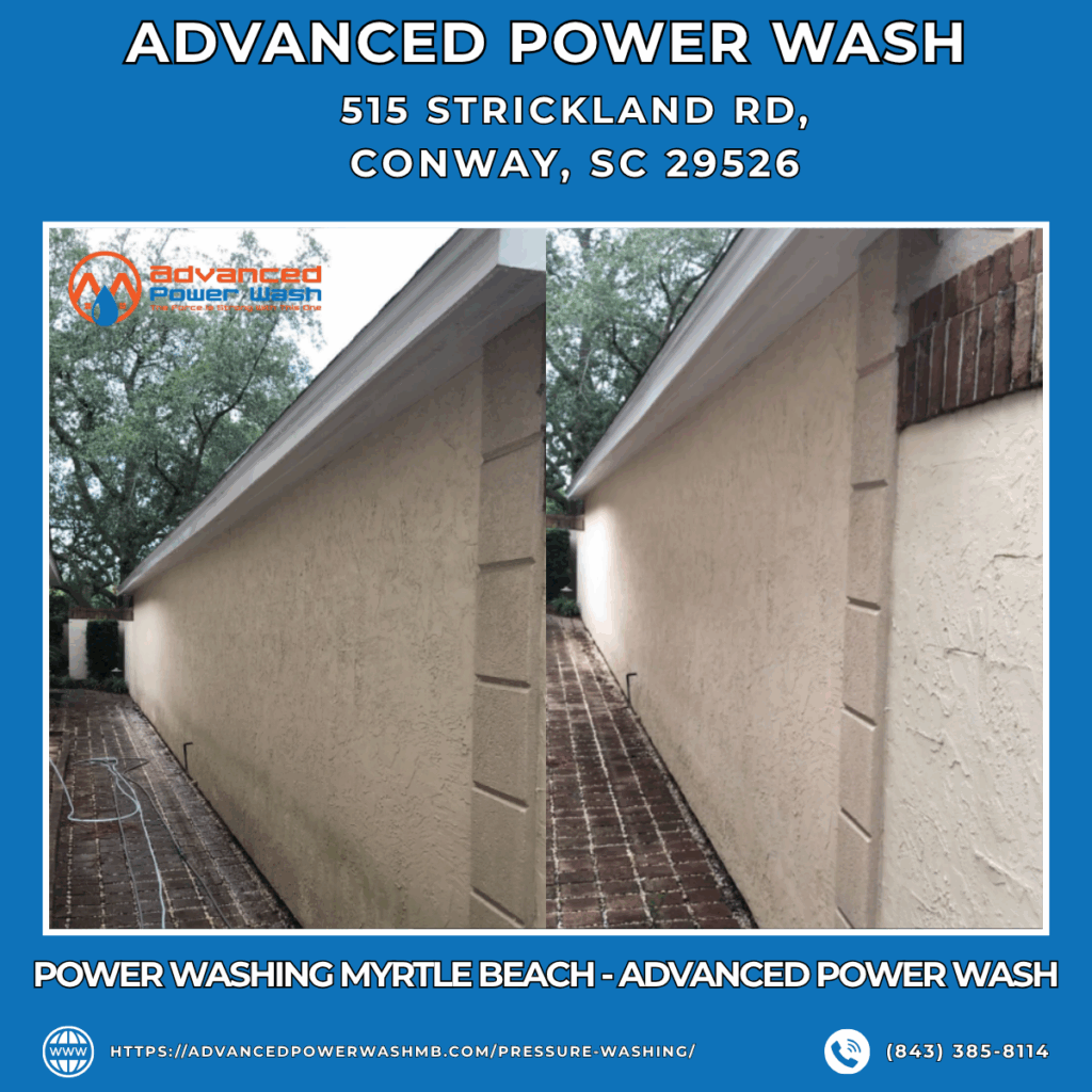 The advantages of safe Power Washing Myrtle Beach soft washing make it ideal for Myrtle Beach’s common building materials. Vinyl siding, painted surfaces, roof shingles, stucco, and EIFS all benefit from this gentle yet effective approach. The cleaning agents we use are biodegradable and eco-friendly, breaking down naturally without harming landscaping or contaminating groundwater. Results last significantly longer than pressure washing alone because the treatment kills mold and algae spores rather than simply washing them away.